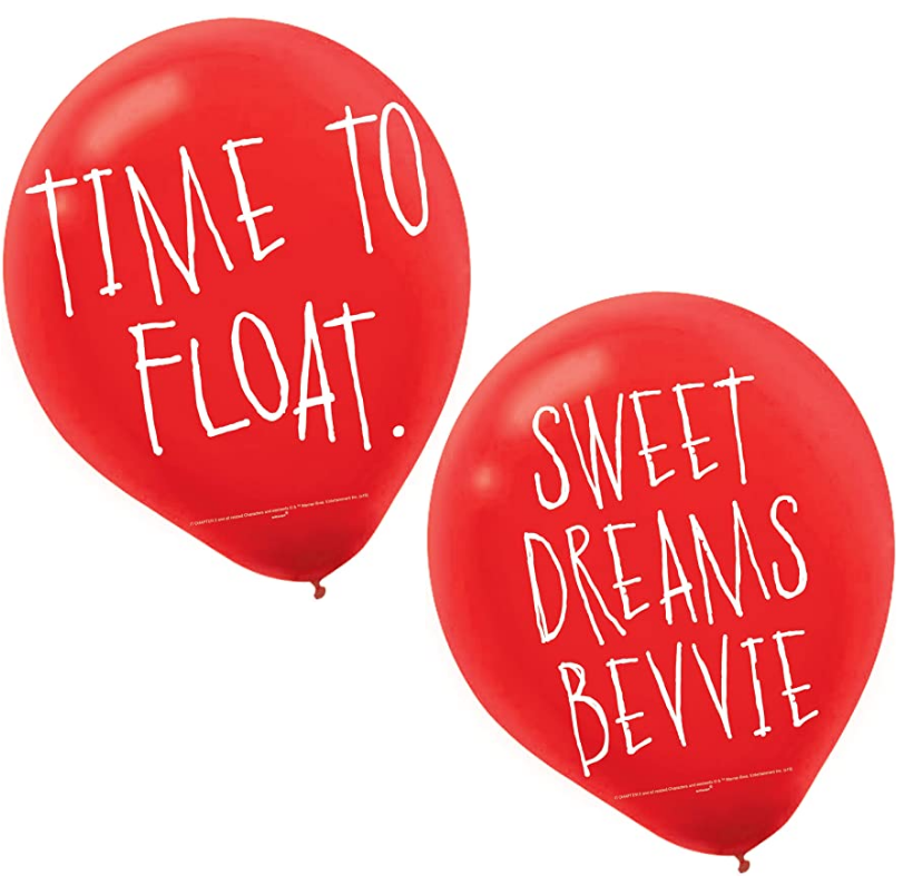 | Fill these with helium and they’ll float too! These giant IT: Chapter Two Balloons have an inflated size of 24″. Includes two ballons, one reads “Time to FLoat” and the other “Sweet Dreams Bevvie”. | ![]() |