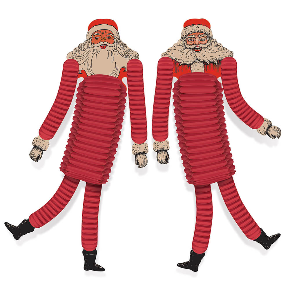 Sold 2 per package. Printed both sides on high quality cardstock, each Santa Tissue Dancer is 21 inches long.