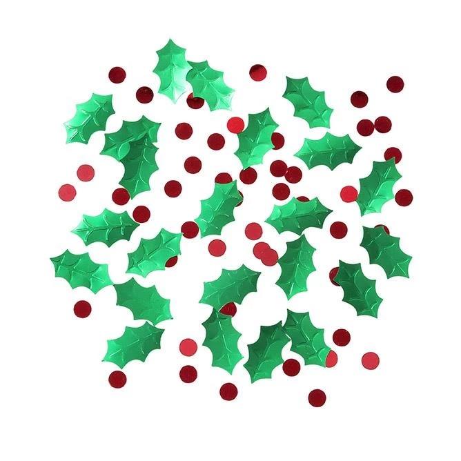 Red and Green metallic holly and berry confetti. 1oz. bag.