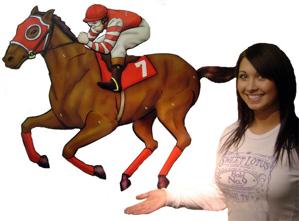 This Colorful Horse and Jockey cutout is Jointed in multiple locations so that it can be posed and positioned numerous ways. At around 40″ from nose to tail this cutout is sure to be seen.
