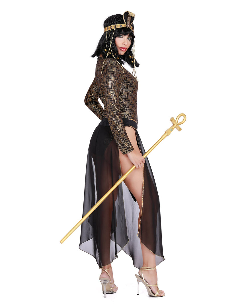 This exquisite costume includes an Egyptian print bodysuit with snap-crotch and a chiffon skirt with the Egyptian symbol “Ankh”.