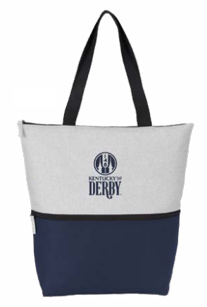 This grey and navy merlin zippered tote bag features the officially licensed Kentucky Derby 148 logo and makes a great gift for any Kentucky Derby fan or horse racing enthusiast.