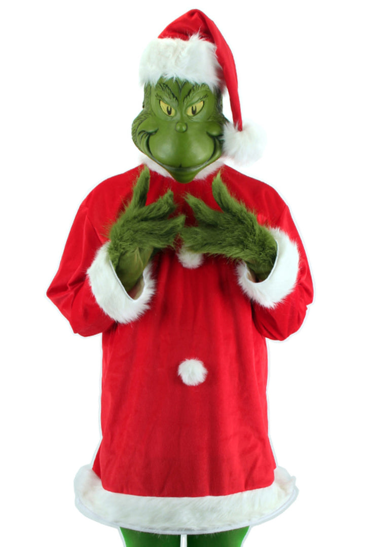 Steal Christmas, or just melt hearts this winter, when you wear this Dr. Seuss The Grinch Deluxe Santa Costume with Mask. We’ve crafted this Santa disguise to recreate the one the Grinch made famous in the beloved children’s book. You’ll be instantly recognizable as mean old Mr. Grinch this Christmas with the full face painted silicone mask, bright red tunic, and bright red Santa hat. We’ve even trimmed the collar, cuffs, and hem of this enchanting tunic with luxurious white faux fur while the hem will stand out in cartoonish style thanks to the light wire structure at the base. Whos tall and small can wear this full costume thanks to the easy tie back and multiple sizes while the Grinchy green gloves will cover hands fully as they reach out to steal the last can of Who hash. You may find your heart grows three sizes too big as you fall in love with this Dr. Seuss The Grinch Deluxe Santa Costume with Mask.