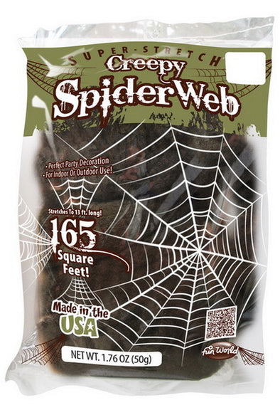 Stretchy Spider Webs in a great creepy green-brown color! Perfect decoration for your next haunted scene and is suitable for indoor or outdoor use. Stretches up to 13 feet long! The more you stretch it, the more realistic it looks! 50-gram bag (1.76 oz)