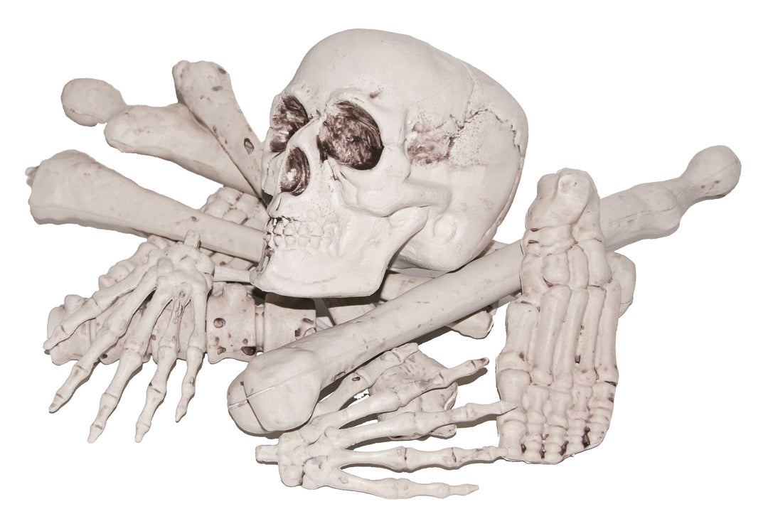 Great to use as a prop with bones in the bag or simply open the bag and scatter the bones around your haunted display. The size of this item is 12 inches x 3.5 inches. Plastic lig bones. Comes in mesh bag. Bones do not assemble. Parts do not hinge (non movable parts).