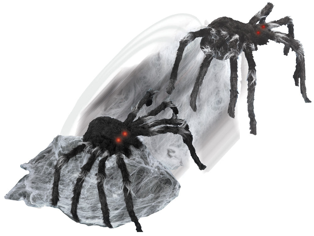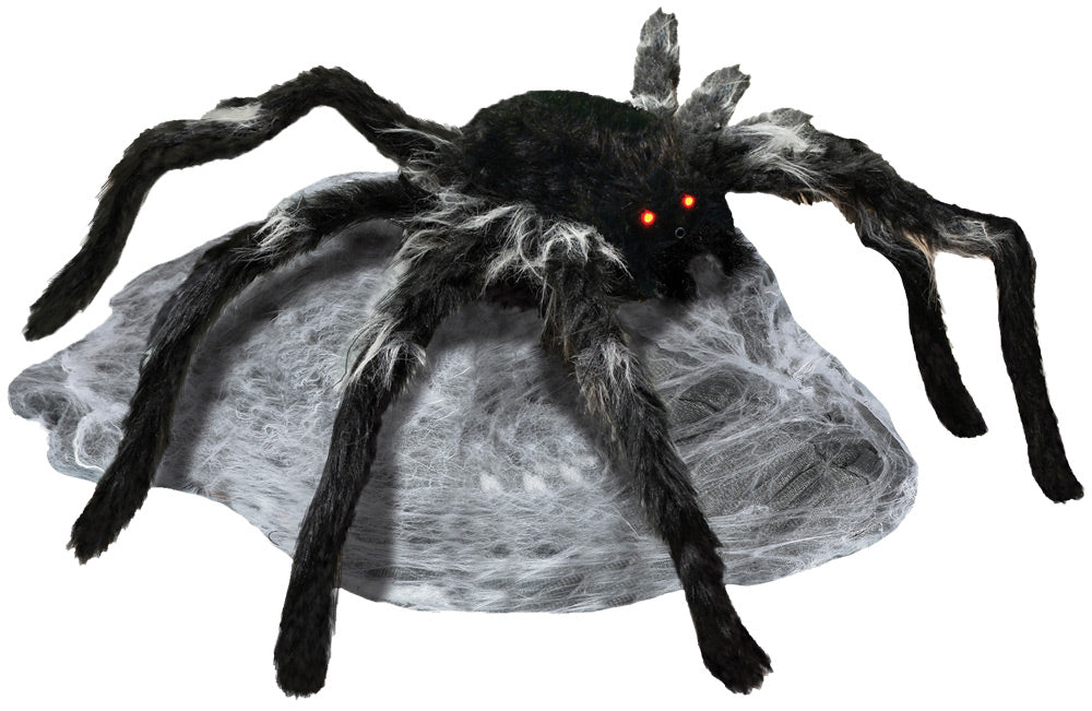 Sleeping spider jumps out of his webbed bed ready to attack! Complete with evil lighted eyes and creepy sounds! Activated by sound motion or foot pad. Has lighted eyes and makes scary sounds. Takes 4 AA batteries or one 6v2a adapter.