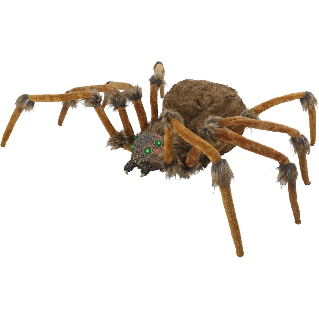 This Spider will make you scream! Features a big round furry body with green light-up eyes long legs with fur tufts