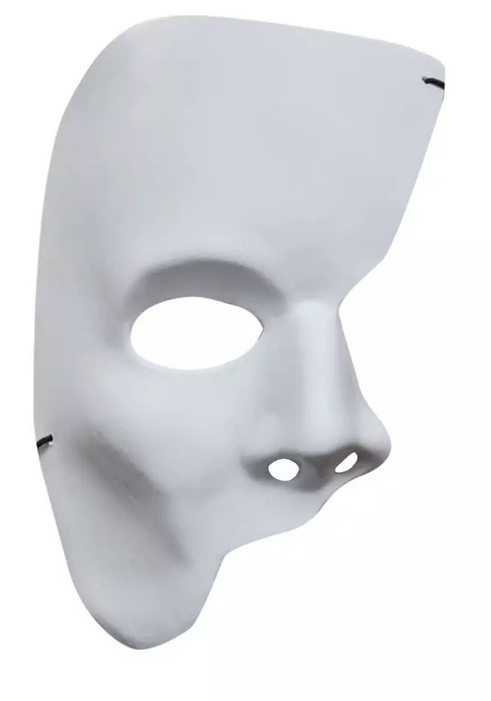 Are you a misunderstood musical genius? Or just a guy with an eye for the ladies? Whatever your motives and situation, a Phantom Mask gives you the look of the fabled opera house villain with the voice of an angel but the face of a corpse. This plastic mask covers just half of your face and has a molded nose and eyebrow. With its heavy duty plastic construction and elastic strap for comfortable and secure wear, this Phantom Mask will have you singing the music of the night!