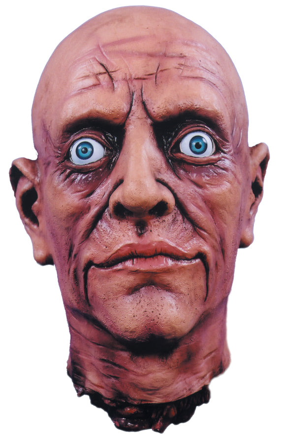 Latex Cut Off Head with realistic plastic eyes. Excellent detailing and hand painted. Very lifelike. Head is approximately 11 inches tall 7 inches wide and 8 inches front to back.