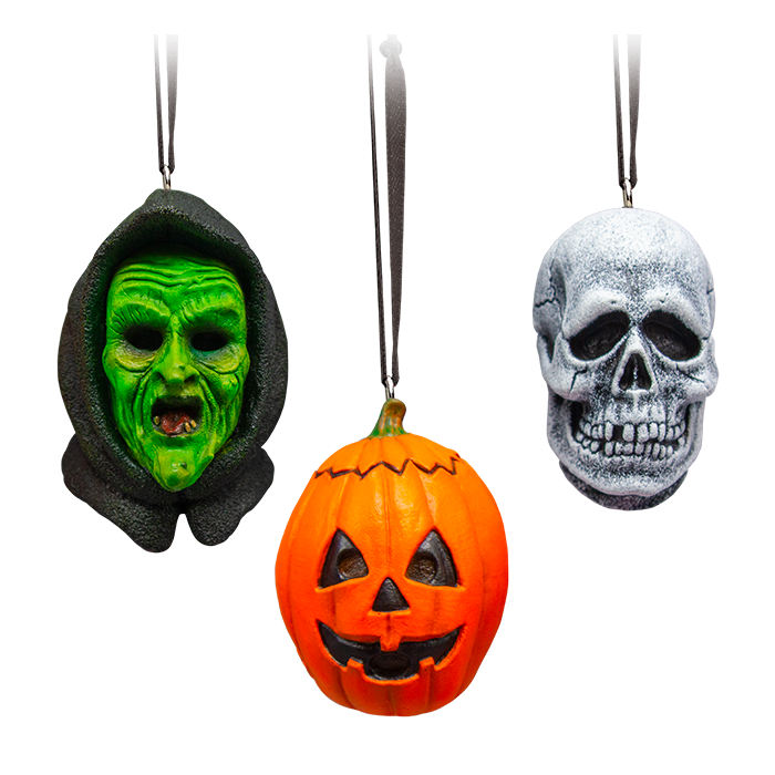 | Trick or Treat Studios and Universal Studios are proud to present the Official Halloween III: Season of the Witch Holiday Horrors Ornament 3 Pack! These amazing ornaments are made in resin and is meticulously painted to perfection. In addition, the ornaments comes in a beautiful Collectors Window Box. Each ornament is approximately 2″. So get yourself our Halloween III: Season of the Witch Holiday Horrors Ornament 3 Pack and proudly display it in your car, house, office and of course, your Christmas Tree. Halloween III is a trademark and copyright of Universal Studios. Licensed by Universal Studios Licensing LLC. All rights reserved. | ![]() |