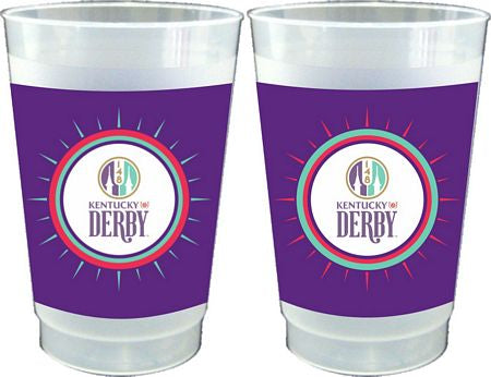 These 14 oz. frosted cups are flexible, durable, dishwasher safe and decorated with the officially licensed logo of the 148th Kentucky Derby. There are 10 cups per package.