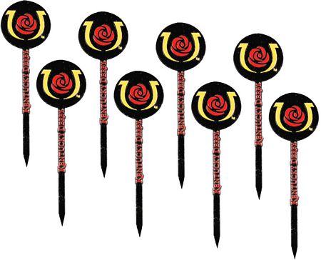 These Kentucky Derby Food Picks are 4″ long and come 8 per package. Each is printed with the officially licensed Kentucky Derby Icon logo with the logo and words raised and decorated with metallic ink. They are packaged in a crystal clear hanging bag. Made in the USA.