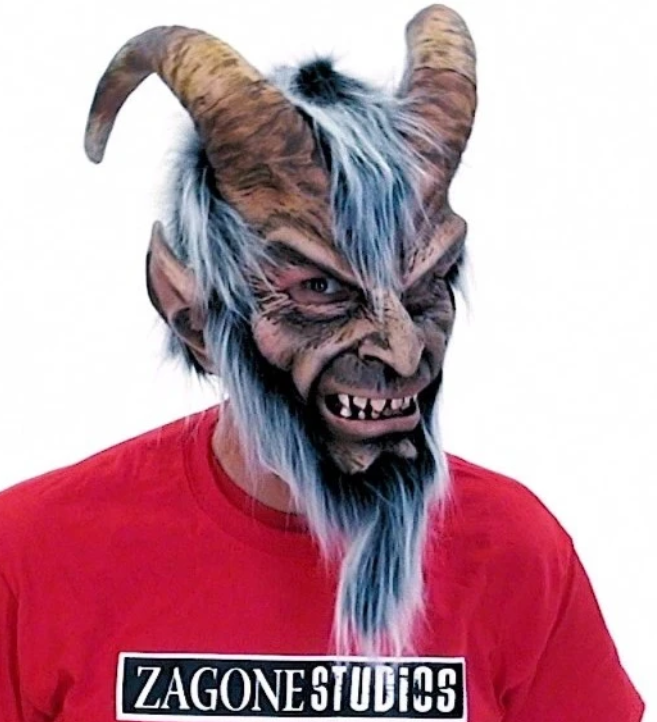 Zagone Studios Krampus Mask. Over the head mask with fun fur hair and huge horns. Perfect for Theater, Halloween and Haunted Houses. This mask can also be used as the beast to your beauty!